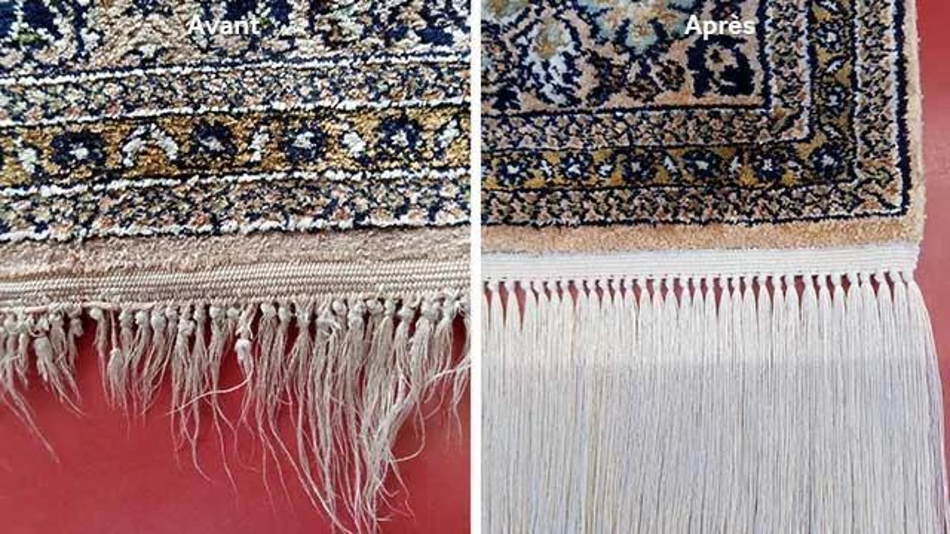 Des franges qui se défont ou des lisières (bords) qui s’ouvrent, ce n’est pas seulement esthétique : c’est souvent le début de la dégradation structurelle. Plus on attend, plus le tapis se fragilise, et une petite réparation peut devenir une restauration lourde.